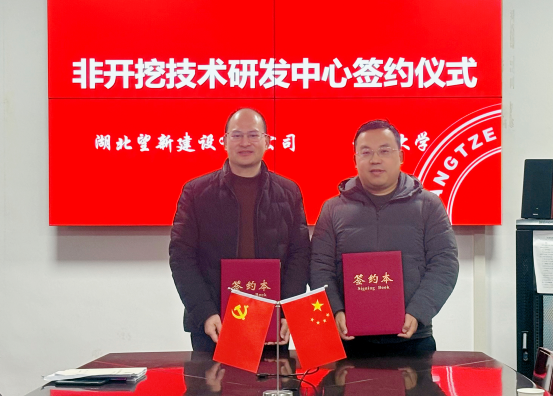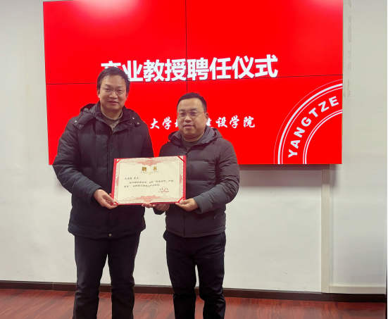 产业教授表示祝贺。党委书记谌姿向武超毅颁发产业教授聘任证书。副院长肖桃李与武超毅签订《非开挖技术研发合作协议》。