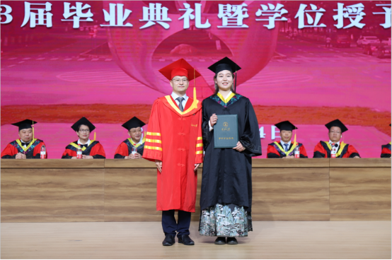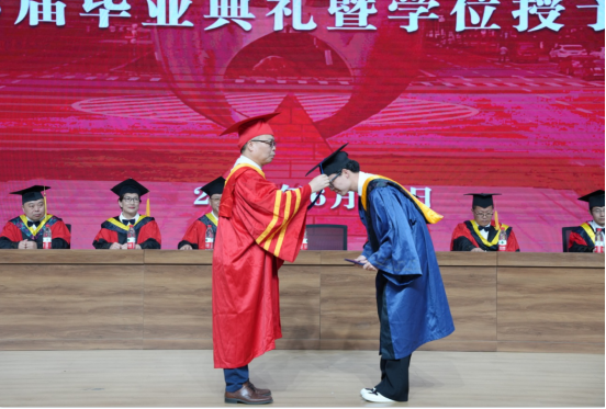 学位授予仪式环节,副院长张继承教授、副院长肖桃李教授先后上台为研究生毕业生、本科生毕业生授予学位。