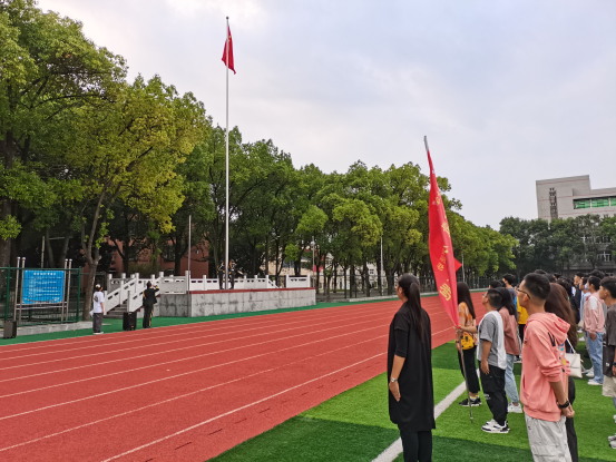 西校区田径场举行升旗仪式及“千班唱红歌,万人健康跑”活动。城建学院学工办主任周喆、辅导员魏民生及城建学院2021级全体学生参加了本次活动。