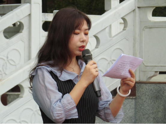 随后,学工办主任周喆老师发表讲话。首先,她强调大一新生应注重校规校纪,希望同学们在大学生活中遵守纪律,将纪律内化为自己的道德要求,从而转化为自己的自觉行为。其次,她提出“认识规律、把握规律是做好各项工作的前提”,这样有助于尽快融入大学生活,开启新的求知问学之旅。最后,她强调了自律的重要性,希望全体同学能够学会自我约束、自我控制、自我激励,能够成为能挑起重担的中坚脊梁。