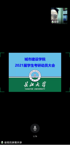 召开线上考研动员大会暨经验分享会。学院党委副书记周俊、17级学生、16级建筑规划专业学生及部分18级学生参加会议,会议由17级辅导员胡冰恒老师主持。