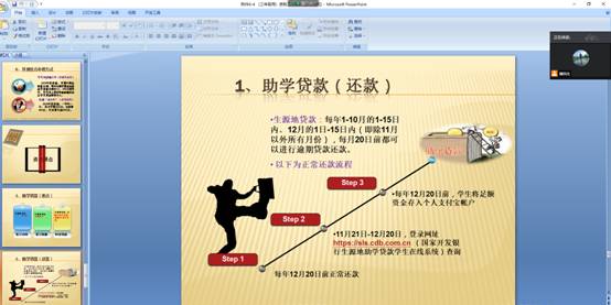 建立了毕业贷款学生工作台帐,建立了QQ通知群,并在毕业年级班会上把还款政策、还款流程、支付宝生活号绑定方法详细地介绍给每一位同学。学院也高度重视毕业班的诚信教育,每场班会都有一个院领导参加,叮嘱学生要按时还款,遵纪守法,在就业时不能伪造虚假材料,肆意地与签约公司毁约,要深知明礼诚信的重要性,将诚信做人贯穿始终。