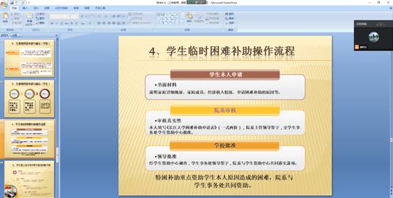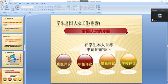 为提高我校精准资助的育人效果,在2017级班主任的带领下,全体三年级学生共同学习了《国家大学生资助政策》,班主任也向学生详细介绍了我校的资助育人体系、资助政策、资助流程以及生源地贷款办理中的注意事项。学校是学生的港湾,在学生家庭经济遇到困难时,学校会伸出援助之手,尽力所能及的力量帮助学生渡过难关。学生要清楚学校的资助政策、项目、类别和途径,这样才能有效地达到精准资助的效果,让每一位家庭经济困难的学生都感受到学校的温暖。