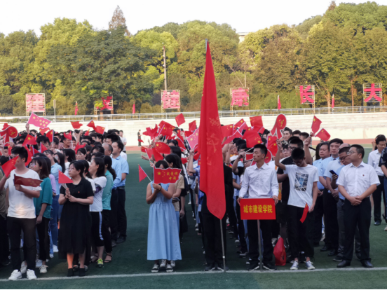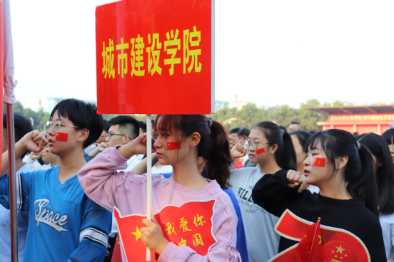 早上6点半,城建学院东、西校区共近600名在校师生早早来到田径场,整齐列队参加学校的迎国庆升国旗活动。大家精神抖擞、朝气蓬勃,脸上的国旗脸贴和手上挥动的小红旗充满欢庆国庆、喜悦自豪的节日氛围。