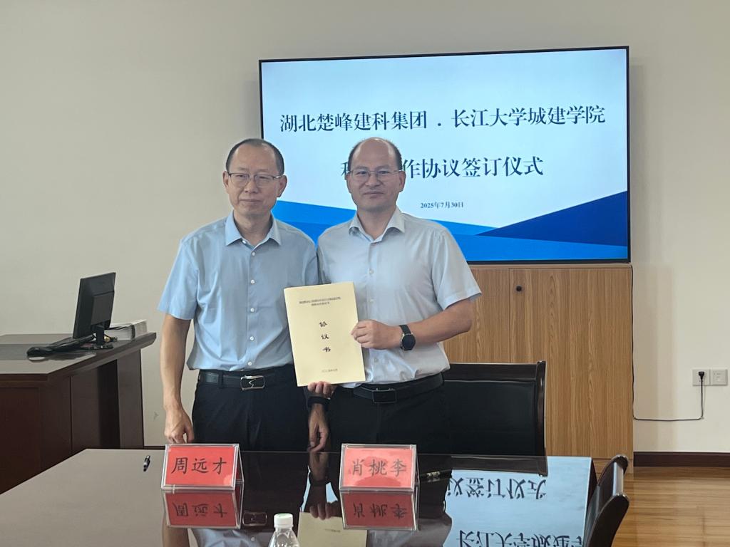 (通讯员 赵云峰)为提升创新能力和促进科研成果转化,助推学院高质量发展,7月30日上午,院长肖桃李带队赴湖北楚峰建科集团股份有限公司开展校企合作交流,并签订校企合作协议。湖北楚峰建科集团股份有限公司创始人孙春光、董事长周远才、行政部部长刘孝平、科技处主任孟忠菊等领导参会。