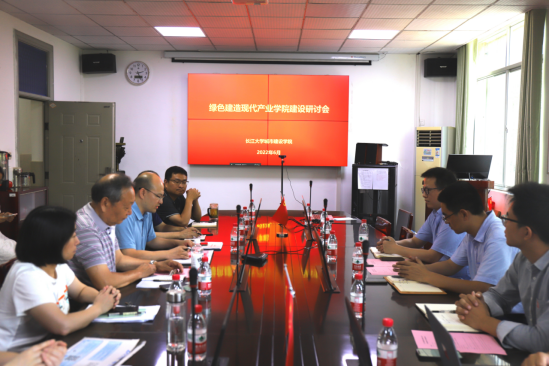 在9教208举行绿色建造现代产业学院建设研讨会,国家一级建造师华国、建造工程师闵小双、工程师付轶龙、城建学院土木与工程管理系全体教师参加会议,会议由学院副院长肖桃李主持。