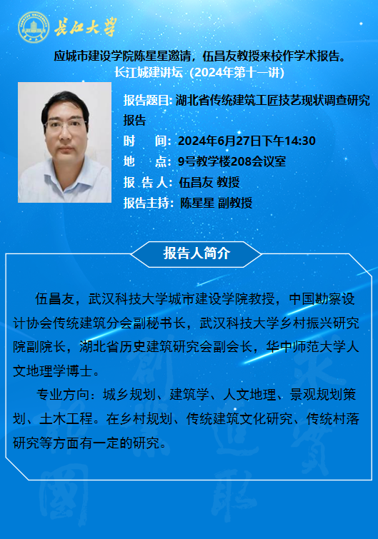 长江城建讲坛2024年第十一讲:湖北省传统建筑工匠技艺现状调查研究报告