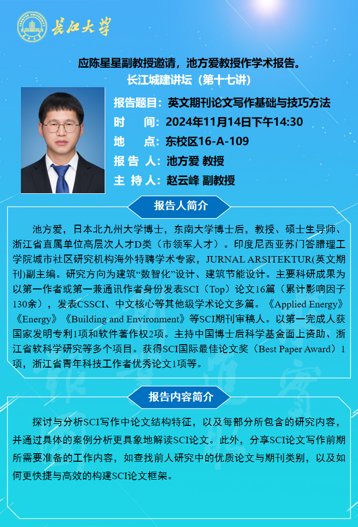 长江城建讲坛2024年第十七讲:英文期刊论文写作基础与技巧方法