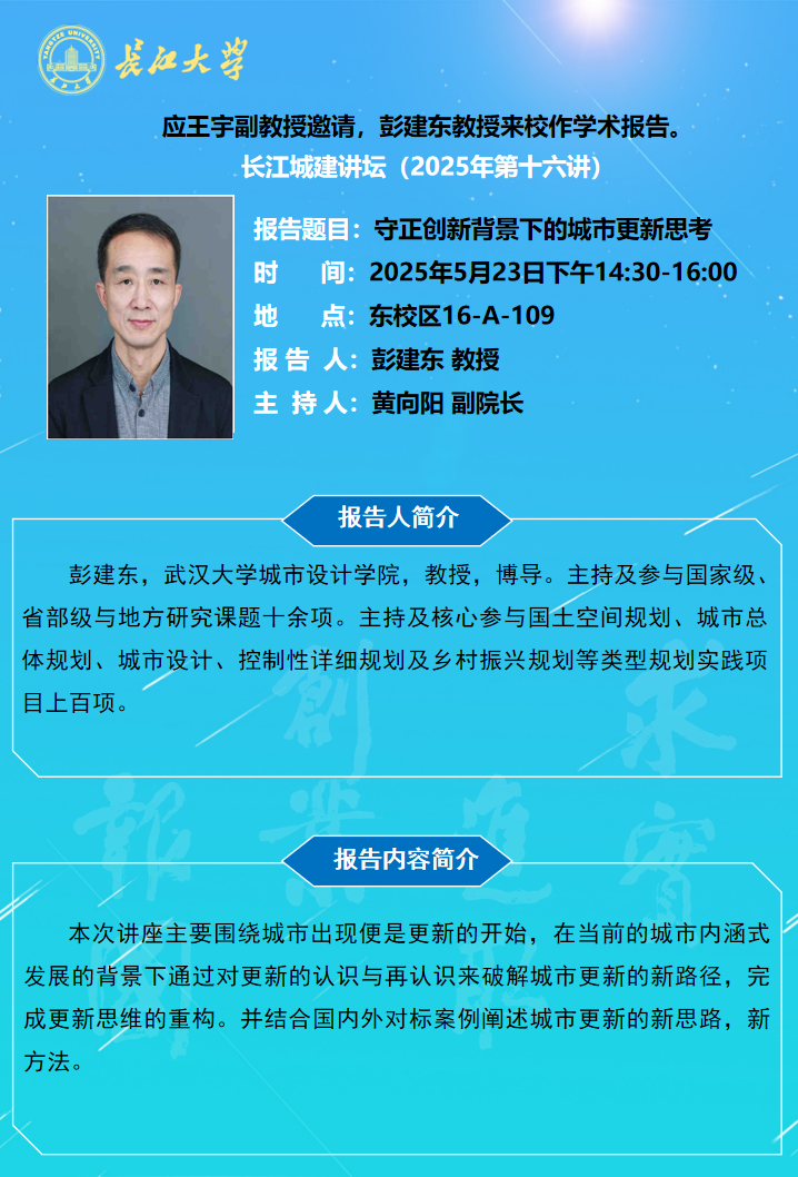 长江城建讲坛2025年第十六讲:守正创新背景下的城市更新思考