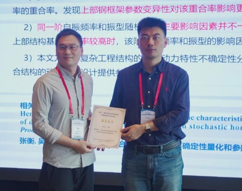 张衡副教授受邀参加此次盛会,并在分会场作题为“竖向混合结构自振特性不确定性量化和参数全局灵敏度分析”的学术报告。报告内容基于同伦随机有限元法对竖向混合结构的基本动力特性开展参数的全局灵敏度分析,实现了构件层次的结构自振特性影响因素的重要性排序。报告内容得到与会专家的充分肯定。