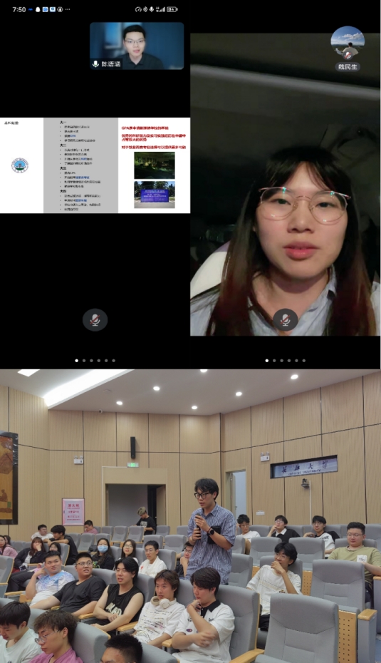 学院还邀请了往届优秀学子陈语涵和沈洋两位校友,在线为22级学生分享求学和工作经历,现场与学生和家长连麦互动,解答学生对生涯规划的迷茫和困惑。