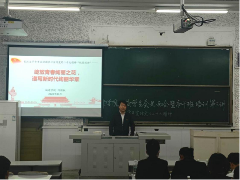 青年宣讲团成员、院团委副书记何儒权对党的二十大精神进行了宣讲,党建就业专干胡冰恒、22级辅导员杜琛、第十九届团委学生会全体成员、22级初干班学员及青马学习小组参加本次培训。