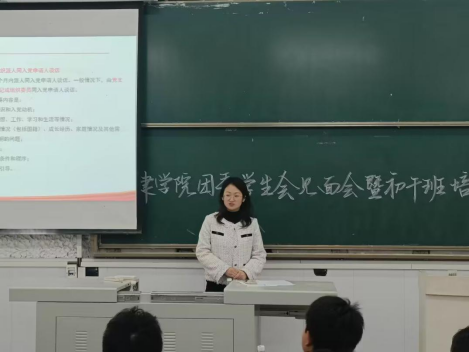 (通讯员 张剑琳)为引导2022级学生从大一就了解入党流程,端正入党动机,4月6日下午,党建专干及就业专干胡冰恒老师于西校区3教T1为2022级“未来计划”初干班学员、第十九届团委学生学生干部开展了“如何向党组织靠拢”的入党工作培训。院团委副书记何儒权、22级学生辅导员杜琛参加本次会议。
