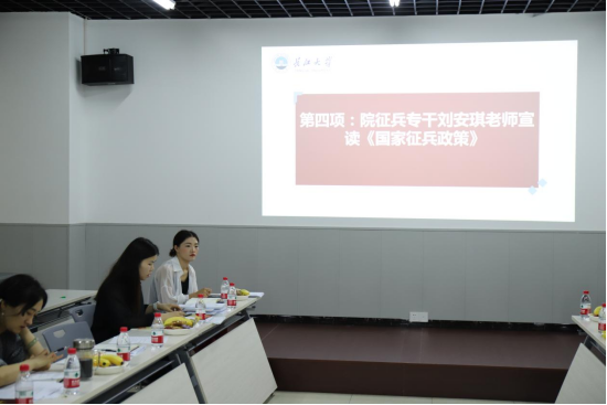 2022届毕业生代表在5月25日下午在22栋A124参加2022届毕业生座谈会,座谈会中对国家征兵政策进行了宣传。其他年级有参军意向的在校生于26日下午15:20在主教22栋A124参加此次征兵宣讲会,宣讲会由学院征兵专干刘安琪主持,征兵宣讲员崔万丰、蒋志兵进行相关宣讲。
