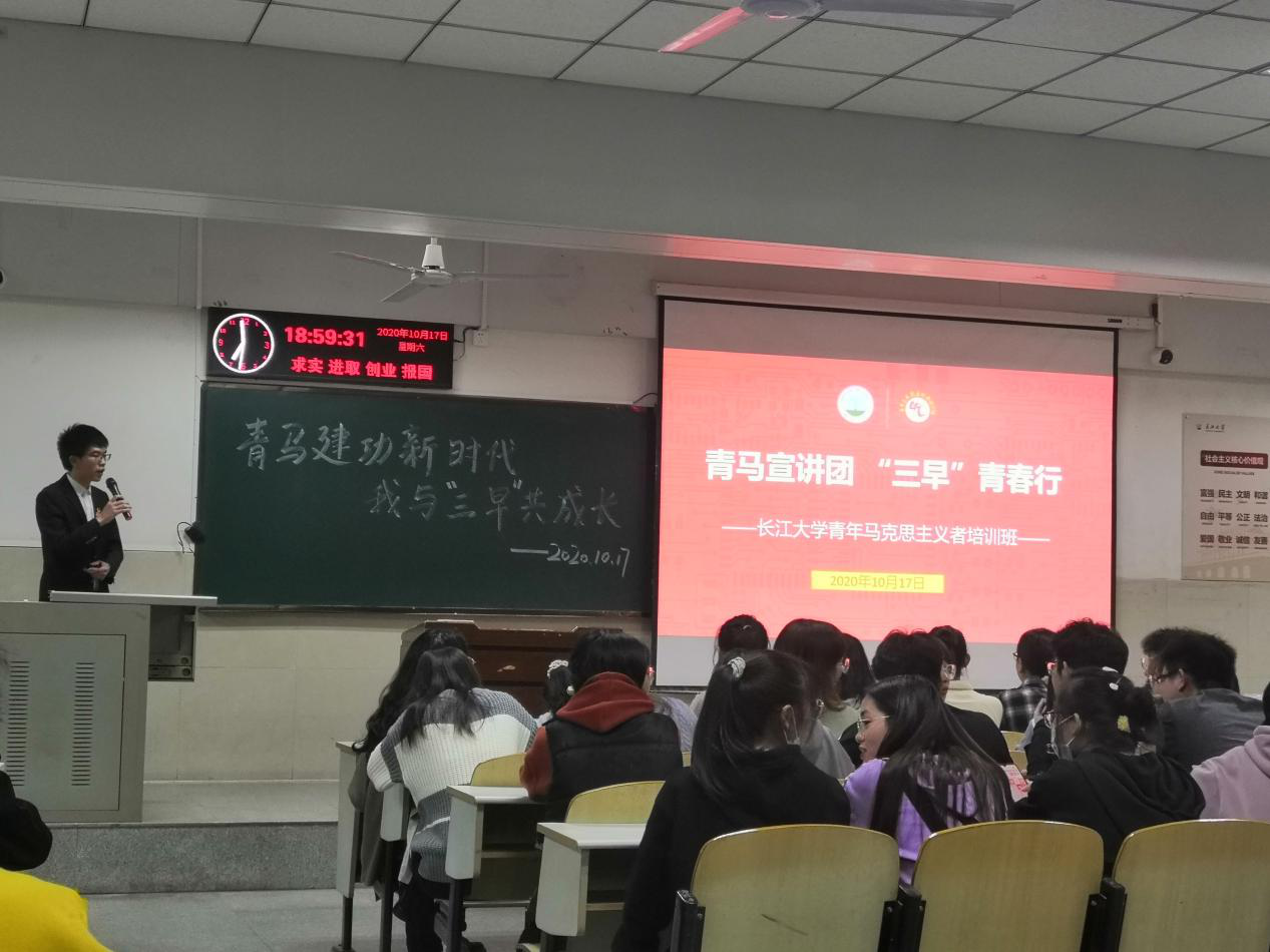 在东校区12教104室开展“青马建功新时代,我与‘三早’共成长”宣讲活动,研究生一年级和本科二年级团支部学生干部及学生会学生参加了此次会议。