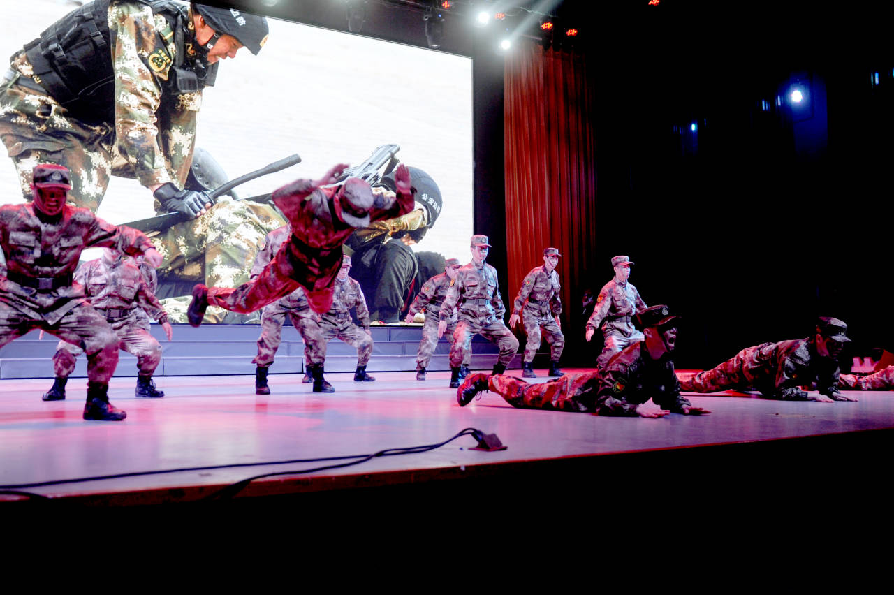 为了充分展现城建学院退役大学生的良好精神风貌和退伍不褪色的血性担当,参演成员在课程紧张的情况下,仍在表演前的三四天,坚持每天腾出几小时进行训练,力争给观众带来一场高水平的演出。演出中,在 “前进”“卧倒”一声声口令与激昂的背景音乐下,退役大学生们动作整齐划一、刚猛有力,表演自然流畅,把军人能打仗、打胜仗的精神状态挥洒的淋漓尽致,获得现场观众们热烈的掌声与欢呼。