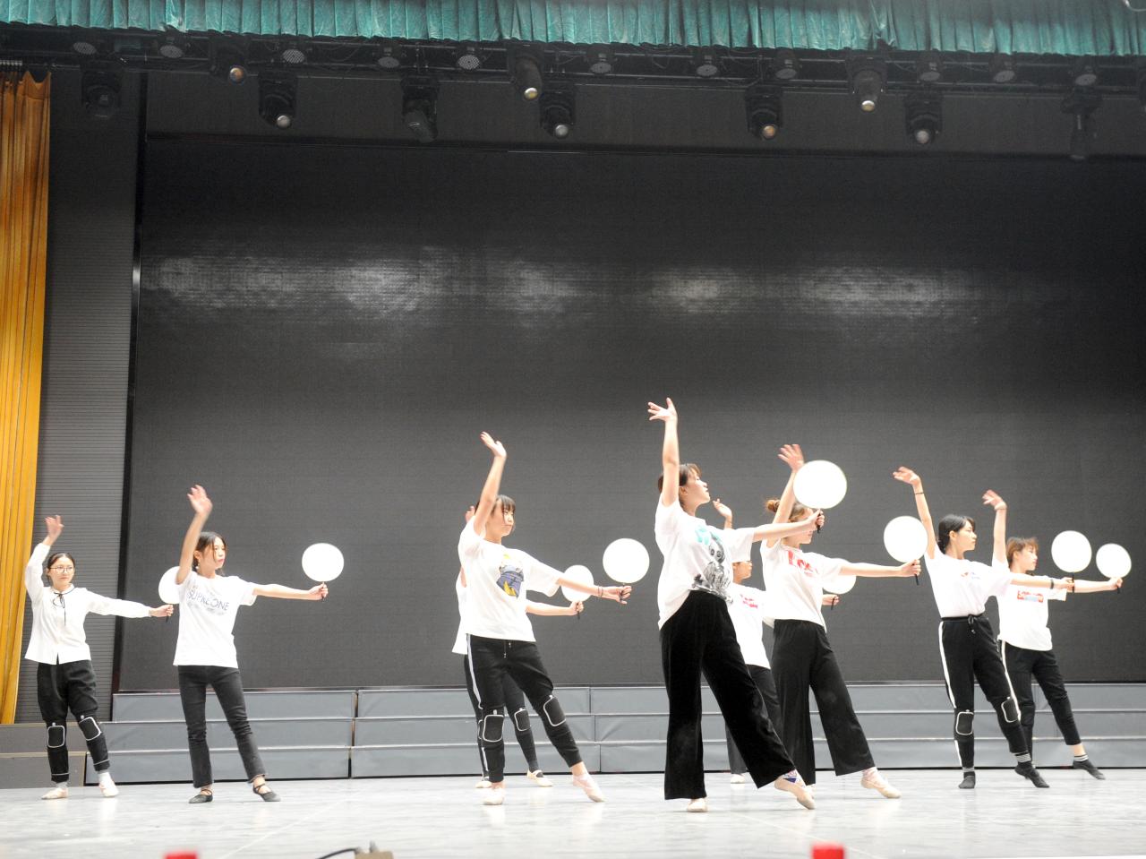 盖东芳老师、颜学俊老师观看完表演后,与参演学生就提高表演质量进行了探讨,对表演时舞台的站位、动作一致性、道具的取舍等提出了一些要求,确保节目的观赏性。本次预选活动圆满结束。