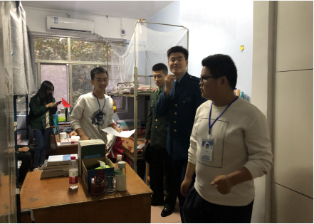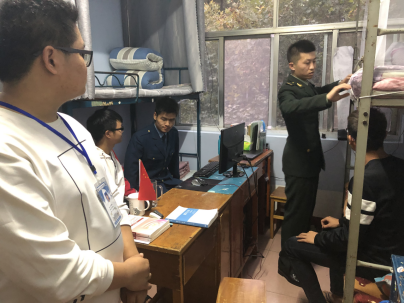 学生会宿建部成员与退役大学生士兵联合检查宿舍安全卫生