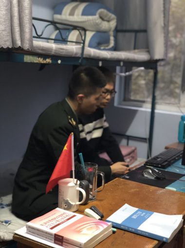 退役大学生士兵与学弟交流讲解解放军内务条令及物品摆放要求