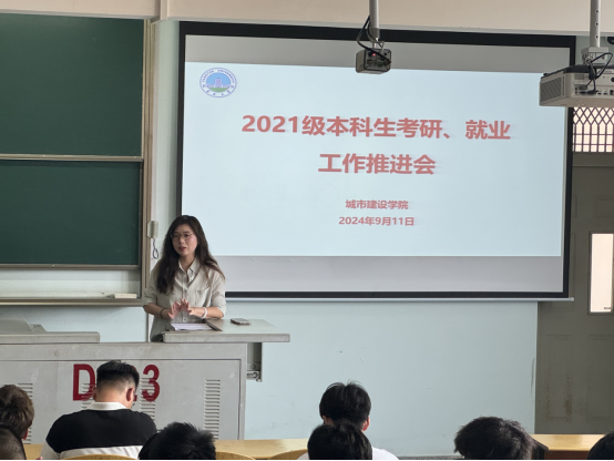 在东校区13教D423教室举行2025届土木类毕业生考研就业推进会。学院党委副书记周洁如、就业专干杜琛、2025届土木类本科毕业生参加会议。会议由2021级年级辅导员魏民生主持。