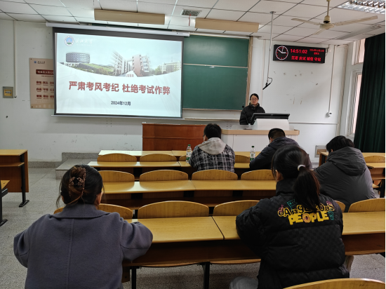 学生违纪处分办法》、《国家教育考试违规处理办法》,通过讲述考试违规案例向学生强调要自觉遵守考场纪律,坚决杜绝在考试中使用各种手段进行作弊,要以诚应考,以信取胜。