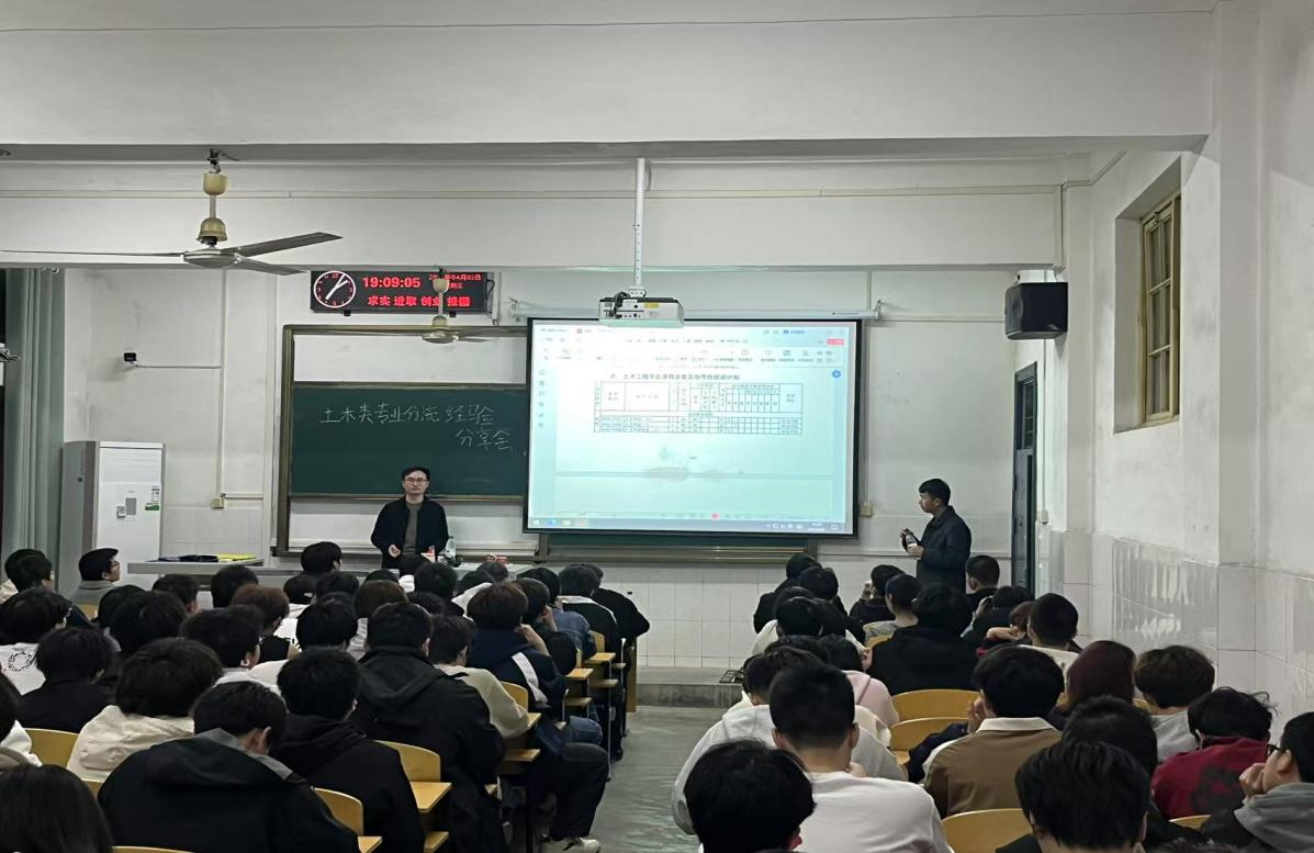 会议第一阶段,各班主任依次系统阐释土木工程、智能建造、给排水科学与工程等专业方向。通过解析专业内涵特色、发展沿革、前沿技术动态、行业人才需求、就业领域分布、岗位发展路径及考研深造方向等维度,构建起完整的专业认知体系。在教学展示环节,教师团队立足教学科研与工程实践经验,通过典型案例解析,帮助学生具象化理解各专业的学习内容、研究领域及职业发展图景,同时着重强调个性化发展规划的重要性,建议学生结合自身特质审慎选择专业方向。