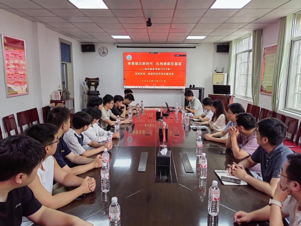 在9教208会议室召开2025届西部就业、基层就业毕业生座谈会。学院党委副书记周洁如,2025届毕业生班主任黄庆瑞、吴小刚、郝勇、何云龙、刘流,辅导员魏民生、杜琛,以及31名即将奔赴西部、扎根基层的2025届毕业生以线上线下相结合的方式参会,会议由杜琛主持。