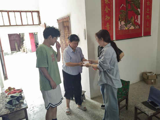 家访过程中,工作小组为每个受访家庭送上慰问金及生活物资,围绕学生成长环境、家庭收入来源及现实诉求,与学生和家长面对面交流。辅导员向家长系统讲解国家奖助学金、助学贷款、勤工助学及临时困难补助等资助政策,确保家长“听得懂、记得住、用得上”。同时,老师们还向家长反馈了学生在校期间的学业成绩、综合表现及思想动态,并针对家长普遍关心的考研升学、就业规划等问题进行具体指导。