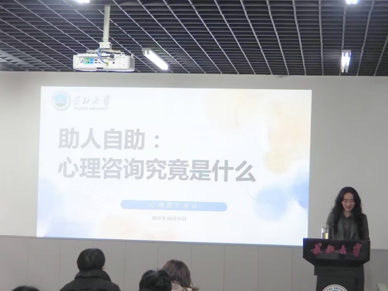 于10月27日、11月10日分别在东西校区举办2025级研究生及本科生心理骨干专题培训。本次培训由研究生辅导员盖东芳老师、2025级本科生辅导员刘安琪老师主讲,旨在赋能班级骨干成为同学身边的“心理哨兵”,共筑健康和谐的校园氛围。