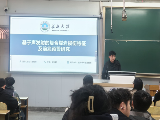 在主题分享环节,来自电信学院的罗金发同学结合自身项目实践,分享了图形图像处理领域的技术演进路径与实际落地经验;尹恒同学则围绕边缘计算技术在油气开采中的应用,介绍了油井动液面深度测量的创新方法,展现了前沿技术与行业需求的紧密结合。城建学院的黄炜皓同学系统阐释了高质量文献综述的撰写逻辑与发表策略,为同学们开展系统性学术综述提供了清晰指引;陈铭辉同学展示了基于声发射技术的复合煤岩损伤监测与预警研究,为矿山安全防控提供了新的技术视角。