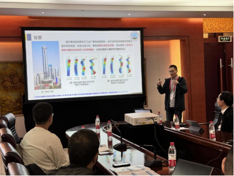 张衡博士受邀参加此次盛会,并在随机参数结构分析分会场作题为“随机结构自振频率的同伦求解竖向混合结构自振特性不确定性量化和参数全局灵敏度分析”的学术报告。该报告详细介绍了竖向混合结构的自振特性对其动力设计的重要意义,并以实际钢筋混凝土(RC)-钢框架配电楼为例,考虑结构参数随机性,基于同伦随机有限元法得到结构振型的概率统计特征。在此基础上,通过随机参数的全局灵敏度分析,实现了构件层次的结构自振特性影响因素的重要性排序,报告内容得到与会专家的充分肯定。