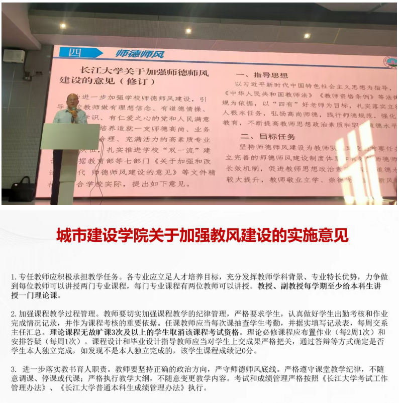 师德师风建设,增强教师责任感、使命感,明确师德底线,规范教师职业行为,引导教师落实立德树人的根本任务。2024年,城建学院以“师德师风”建设为着力点,成立师德师风建设领导小组,制定师德师风管理办法,完成师德师风建设年度工作计划,收到较好成效。