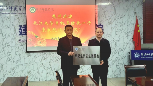 在黄冈师范学院交流期间,黄冈师范学院院长卢雪松、副书记董旭、副院长周永、实验室主任汪杰、青年教师代表黄钢博士参加座谈。双方围绕研究生教育、研究生联合培养、科技项目申报、高水平科研平台建设等方面开展了深入讨论,双方院领导就进一步深化合作、实现互利共赢发展进行了深入交流,并签订了《硕士研究生联合培养及生源基地协议书》和举行了研究生优质生源基地授牌仪式。